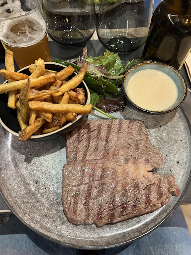 Read moreJe nâai pas pour habitude de poster des avis sur Google, mais cette fois, je ne pouvais faire autrement. Jâavais promis de laisser un commentaire aprĂšs mon dĂźner du jeudi 09/05. Câest dĂ©sormais chose faite. En effet, ce restaurant est pour moi un vrai coup de cĆur ! TroisiĂšme visite en moins dâun mois ! Pour commencer, lieu super agrĂ©able et cocooning avec une dĂ©co moderne mais chaleureuse. La cuisine est juste exceptionnelle avec des viandes dâexcellentes qualitĂ©s, trĂšs bien prĂ©sentĂ©es et du fait maison ( sauces, frites, desserts, etc). La carte des vins vaut Ă©galement le dĂ©tour. Le tout servi rapidement. Quand au personnel, gĂ©rante et serveuse, elles sont juste super sympathiques, serviables et ont toujours des petites attentions qui font que manger dans leur restaurant est un moment convivial et exceptionnel. PS: merci pour la photo avec mon ami ! Un vrai coup de cĆur donc, et pour des tarifs plus quâhonnĂȘtes au regard de la qualitĂ© des plats. Merci beaucoup les filles pour votre travail et...