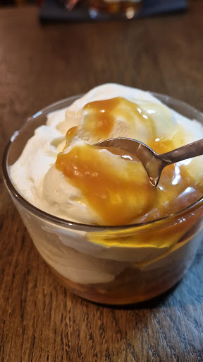 Pour le dessert, que vous étions pressés de découvrir, nous avons suivi les conseils de la personne qui s'est occupé de nous et avons commandé le tiramisu au caramel et Palet breton. Ce fut un choix parfait. Le dessert était tout ce que nous avions désiré. un véritable délice qui va très probablement nous conduire a revenir prochainement et qui a conclu notre repas sur une note plus qu'agréable.