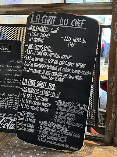 Not your usual french bistro 😍😍 "Droles" sketches on display and lively atmosphere entertained by a dj who mixed live (friday evening)🎧🎤 Interesting! since that's more typical to noisy british pubs rather than the quiet french restos I'd say🙄 The food was ok, nothing to complain about, but I have expected something fancier, some out of the ordinary dishes that most restaurants don't offer, based on the photos I've seen on google...therefore, I think it was a bit expensive for what it offers... Seems to be popular among young...