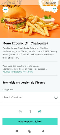 Read moreDe passage à Rennes, j'ai absolument voulu manger à un B Chef, et j'ai été dirigé vers celui-ci. Il restait peu de temps pour commander donc j'étais super content. Service impeccable, le gars est vraiment sympa. Je suis reparti manger directement dans ma voiture et j'ai été vraiment choqué de la mauvaise qualité du burger : burger sec, salade de mauvaise qualité ou vieille, je n'aime pas dire cela de la nourriture mais je l'ai trouvé vraiment dégueulasse que je n'ai pas pu le finir. Ce n'est pas pour descendre le resto, ça peut arriver, mais un burger d'aussi mauvaise qualité est vraiment un choc. Le thé glacé : quasi que de l'eau et le milkshake ça va, il était bon. J'ai souvent été dans des BChef et j'aime beaucoup leur burger mais là, désolé, peut-être était ce à cause de la fermeture proche que le burger fut...