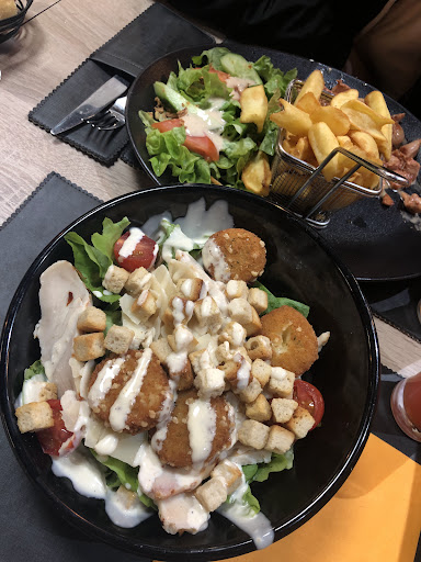Le service est trĂšs trĂšs long.. arrivĂ©s Ă 19:30 (sĂ©ance de cinĂ© prĂ©vu Ă 21:40, donc nous avions le temps), la serveuse a prise notre commande (apĂ©ritif) aux alentours de 20:00) mĂȘme chose entre plats et desserts la serveuse a mis Ă©normĂ©ment de temps Ă prendre nos commandes.. pour un repas rapide nous sommes restĂ©s 2:00 .. Pas de sauce avec les frites ce qui est dommage.