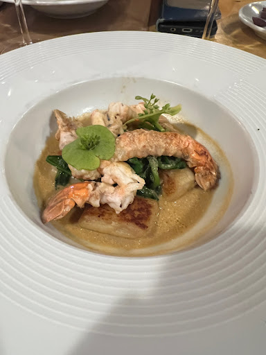 Read moreTrès très très bon. Étant végétarienne j'ai souvent du mal à apprécier les options végétariennes de la plupart des restaurants, mais là, tout était incroyable. Je crois que la carte change régulièrement, mais en tout cas les choix dans celle ci était très bien. L'entrée était bonne (Conchigli farci aux champignons, crème de parmesan), mais le meilleur c'était le plat (croustillant de légumes, fêta, sauce ail des ours, patate douce), c'était vraiment DÉLICIEUX. Le dessert etait lui aussi très très bon (j'ai pris le financier, mousse au citron kalamansi, framboises, glace sésame noir). Je précise toute fois que les quantités peuvent être petites pour les grands mangeurs, avec une entrée un plat et un dessert c'est parfait, un plat seul...