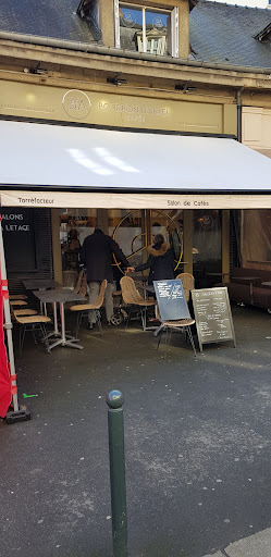 Cela nous invite tout naturellement a regarder l'endroit dans lequel on vient de pénétrer . A votre droite une superbe machine a torréfier qui trône en reine sur les lieux. A votre gauche le comptoir, haut, solide, qui masque a peine le labo duquel vous pourrez observer vos serviteurs préparer fraichement vos commandes. A l'étage un espace plus discret, que vous pouvez privatiser d'ailleurs.