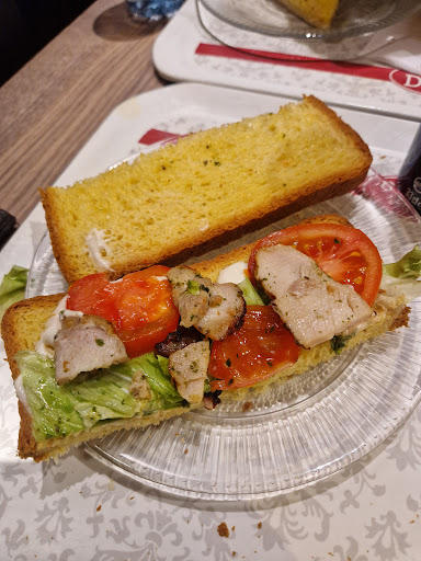 Je suis venu m'acheter une formule sandwich toasté au poulet. 6,5€ le sandwich seul et 10€..en formule. J'ai pris la formule , très bien. Le problème, c'est que le sandwich n'est pas bien grand quand même, on s'en doute que la franchise doit faire des économies (charges électricité, loyer du centre commercial...les salaires etc), = réduction sur la matière première, mais le pire c'est que à l'intérieur de ce pauvre malheureux sandwich toasté 1 pauvre brindille de feuille de roquette et 3 ou 4 morceaux de ce qui s'appelle du poulet mais bien bien industriel tout de même. Une honte, Comme j'ai pas l'intention de devenir un pigeon, je crois que je ne mangerai plus du tout dans votre franchise. Ça me coûtera moins cher de m'acheter un bout de pain dans le carrefour en face C'est le même résultat...