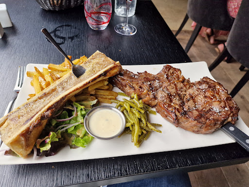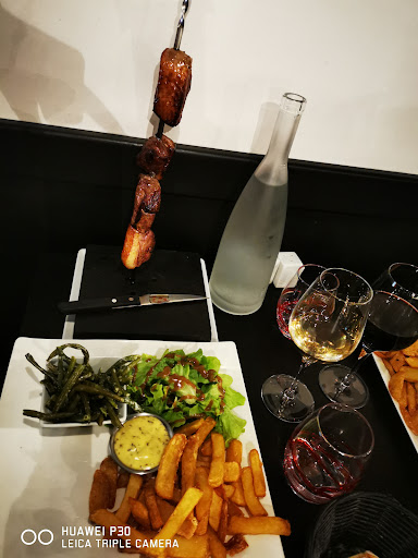 Read moreUn restaurant dont la décoration est faite avec goût, très classe et stylé. Niveau restauration c'était bon mais pas fou. En entrée j'ai pris une brochette de gambas(j'ai oublié de prendre la photo), arrivé sur une petite assiette en ardoise 3 gambas (de belles tailles) sur un pic en bois NON DÉCORTIQUÉ, j'avoue avoir été étonné, niveau goût et bien je reste sur ma fin, peu de savoir, dur (j'ai connu mieux). En plat pour mon ami une magnifique côte de bœuf, quantité et présentation et cuisson TRÈS bien mais la côte était un peu grasse (après les goûts et les couleurs ça ne peut se discuter), bonne mais pareil pas fameuse. Pour ma part j'ai pris les brochettes de canard présentation et qualité TOP, la cuisson également et la viande tendre. En dessert panno cotta caramel pour l'un et thé gourmand pour l'autre,bonne présentation et très bon également. Donc avis mitigée, bonne soirée, serveur agréable, restaurant sympa, et cuisine bonne mais qui peut faire mieux au vu du standing...