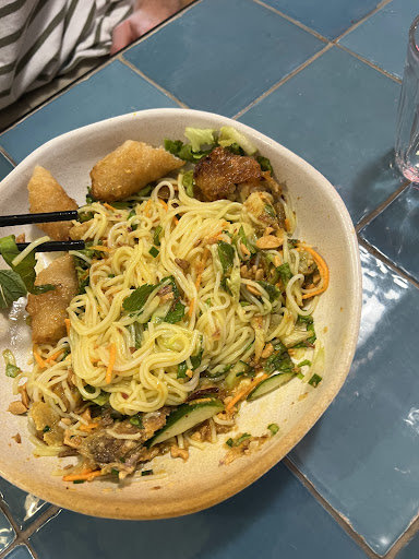 Read moreLe nouveau coup de coeur idéalement situé place des Lices⊠Un délice à ne pas manquer. On se retrouve plongé dans une ambiance urbaine/asiatique avec plusieurs piÚces et atmosphÚre possible. Personnellement j'ai préféré l'ambiance lounge avec sa banquette et ses petits tables les unes à cÎté des autres et sa lumiÚre tamisée. Concernant le personnel, c'est de l'amour, de la patience, de la gentillesse et une envie de bien faire à 200%. Les cocktails sont à tombé, je vous conseille le My Ge-Genius ( je crois), enfin il y a le mot Genius dedans mais le Bangkok Calling est au top. Idéal aprÚs une dure journée de travail ou pour une soirée avec son crew, son BFF ou bien en amoureux (pour le premier date c'est cool aussi). Passons aux plats⊠Disons que j'y suis retournée deux fois en moins d'une semaine tellement j'étais frustrée de pas avoir pu goûter tous les plats⊠La soupe de coco avec du galanga est à tomber, je vous la recommande. Niveau plat, il faut absolument goûter le ramen du moment ou bien les nouilles de blés sautées au lait de coco. Des tueries! Apparement le surprenant sandwich aux moules est lui aussi une bombe culinaire. Parlons du dessert maintenant⊠c'est une obligation pour les gourmands de prendre les nems chocos. Nous sommes sur des nems fins (donc non bourratifs) avec du chocolat à l'interieur, une crÚme de cacahuÚte à cÎté et un matcha de chocolat blanc⊠bref mélangez le tout et vous demanderez à vos pupilles gustatives ce qu'elles en penses. Le tapioca au lait de coco est trÚs bon aussi. Ou bien tentez l'insolite pana cotta façon café. Bref, c'est plus qu'un voyage culinaire ce restaurant, c'est carrément un périple gustatif asiatique avec de nombreux trésors gourmands tout du long. ;) Et ce, avec un trÚs bon rapport qualité prix. Ps: concept original pour douze euros vous pouvez acheter un pack de biÚres pour l'équipe de la...