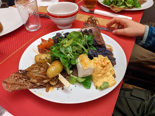 Voilà pour le négatif et c'est bien dommage car le bâtiment de la crêperie est magnifique, l'emplacement est exceptionnel, le patron semble passionné (et va sûrement m'invectiver en réponse comme il le fait dans les autres commentaires négatifs), les employés sont sympathiques et il faut le souligner car c'est rare à Rennes, elle est ouverte le dimanche l Pour ce qui est de la nourriture en elle même puisqu'il s'agit quand même de cela, je dois convenir que les galettes étaient très bonnes (à part celles des enfants...), ce qui rend d'autant plus dommage tout le négatif que j'ai cité auparavant.