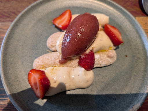 Read moreL'habit ne fait pas le moine 😊 mais attention, ça reste super bon ! Je m'explique, soyons pointilleux :) Premièrement, c'est indéniable, c'est bon et les assiettes sont plutôt jolies , Mais... Ce qui est annoncé n'est que timidement présent dans l'assiette. Le filet de pintade fumé était parfait mais l'huile de café était top inexistante... Résultat, je n'ai pas en bouche ce pourquoi j'ai choisi ce plat, je n'ai pas cette prise de risque de saveurs Ensuite, le plat autour du céleri est magnifique et oser mettre ce légume à l'honneur est tout à votre honneur mais le plat cible l'œuf frit et je reste sur ma faim. J'ai surtout un plat de céleri et c'est dommage.... Mais c'est super bon !!! Pour le dessert, les gels sont hypers puissants, vraiment ! Le sablé et la compotée sont une juste magiques ... Mais la quenelle laisse un goût lacté avec un praliné trop absent, où il manque une légère sucrosité pour que l'ensemble soit cohérent... L'astringence est hyper intéressante mais ce déséquilibre choque... Enfin pour moi :)