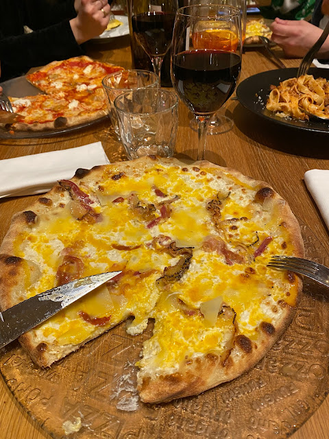 Côté menu, diapason parfait. Les pizzas et les pâtes sont excellentes et les entrées pleines de saveur ! En photo ma pizza carbonara (impossible de me décider entre des pâtes ou une pizza=compromis).