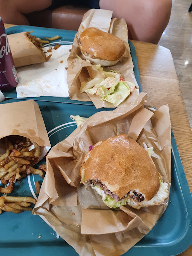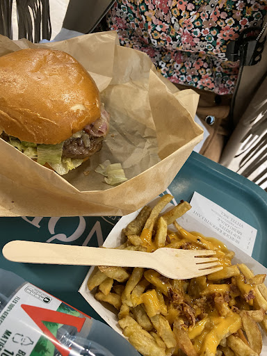 Read moreJ'ai commandé un midi pour prendre à emporter, c'est pourquoi je ne note pas l'ambiance. Un accueil souriant par une personne certainement nouvelle, elle prend ma commande sans aucun soucis, oubli seulement de me demander la cuisson pour la viande (n'y pensant pas moi même ce fut trop cuit à mon goût mais je ne le compte pas). Je l'entend cependant soumettre à son responsable l'idée d'installer un lavabo à disposition des clients pour qu'ils puissent au moins se laver les mains (on rappelle que c'est une enseigne proposant majoritairement des burgers), son responsable rejete l'idée ne "voyant pas un réel intérêt".