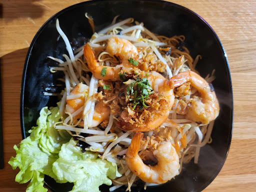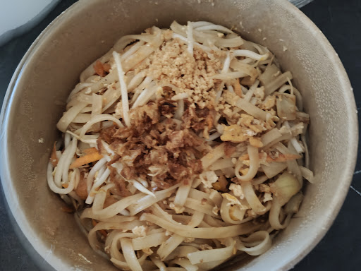 Le pad thaï n'a vraiment pas ce petit goût spécial de tamarin et de cacahuète c'est vraiment dommage. Et les crevettes sont à moitié éplucher, déjà je dois mettre mes doigts dans le plat pour trier les oignons mais aussi éplucher moi même les crevettes 😑.