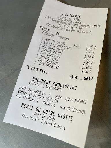 Read moreDisappointing. Living in the area I have tried l'épicerie a few times. Whilst the food is ok and the prices reasonable, I have consistently experienced extremely long waiting times for what is effectively cheese on toast. We tried to stop for a drink on the terrace this afternoon and waited 15 minutes before anyone acknowledged us to give us a menu, after another five minutes I tried to go and order an ice tea and half pint at the bar (Not a complicated order), I was informed service was at the table, so went back to wait some more- surprisingly no one came. We gave up and left. We will not...