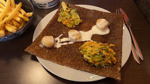 Read moreGalette pas top ( très fine et trop grasse ) ! Je m’attendais à mieux . On peut même pas composer notre galette ou changer un ingrédient ( si on veut changer un truc c’est en supplément même si on retire d’autres ingrédients ) . Même pour une tranche de citron pour la boisson on doit payer . On a pas eu le temps de bien voir le menu à l’aise car la serveuse voulait vite fais prendre commande . Elle était sympa avec les bébés mais c’est pas un endroit pour bébé car il n y’a pas de chaise bébé . Aussi ma belle sœur a voulu cuire l’œuf dans la galette mais apparement ce n’est pas possible alors qu’on le fais souvent dans pas mal de...