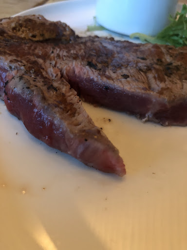 Nous avons commandé 4 viandes (20€ viande + frites) Manque de pot j’ai commandé une viande saignante avec sauce roquefort. Je me suis retrouvé avec une viande « À Point » limite « Bien cuit » avec sauce poivre… Nous l’avons signalé à la serveuse qui nous a répondu « bah si je le renvoie sur le grill ça ne rendra pas la viande saignante … » Ben non effectivement, ce n’était pas la réponse attendue (j’ai failli rire quand même). Elle est donc repartie en cuisine pour avoir une nouvelle viande. La voici (en photo), je vous laisse deviner la cuisson ? « Bleue » limite « Crue »…. avec une sauce poivre 😞