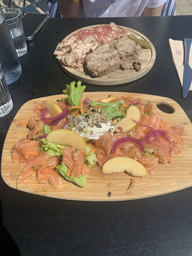 Went there with a bunch of friends we hadn’t seen in a while. The location is gorgeous really - with both Ille and Vilaine rivers joining. We didn’t take advantage of the show for the aforementioned reason. We had a « Nordic » and « Cheese » plate; both were underwhelming. The Nordic plate wasn’t much more than a heap of smoked salmon and one piece of burrata; the cheese plate, which was supposed to offer season cheeses, was composed of only THREE pieces of cheese that were all but seasonal. I mean no offense but those cheeses were pasteurised-milk cheese you can buy at your local grocery store; not the kind of cheese I’d expect when paying 15€ a plate! Last but not least, the waitresses were nice enough, but we’ve still been invited to move away because the customers attending the show were about to come back and « they’d need the space »....