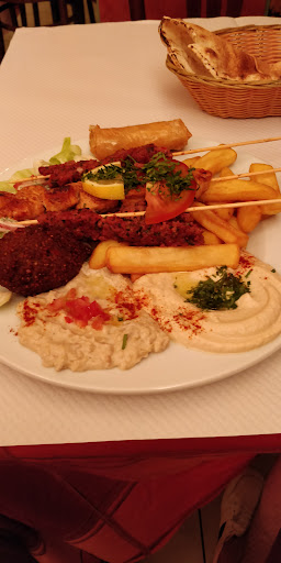 Dans les annĂ©es 80, lorsque nos maigres moyens d'Ă©tudiants fauchĂ©s nous le permettaient, c'Ă©tait dĂ©jĂ souvent au Bybloss que nous allions car le rapport qualitĂ© / quantitĂ© / prix Ă©tait dĂ©jĂ imbattable. Au dĂ©but des annĂ©es 2000, c'est avec nos enfants que nous y allions de temps en temps. Fin 2023, pour la premiĂšre fois, c'est avec l'un de nos petits enfants que nous venons de faire un excellent repas, toujours avec la formule "Mezze Royale" pour 15 ⏠par personne. Ne pas hĂ©siter Ă goĂ»ter la biĂšre libannaise (mĂȘme si elle est brassĂ©e en Belgique...) qui vaut le dĂ©placement, mĂȘme si le vin rouge (vraiment du Liban!) est toujours aussi bon. A cinq, nous en avons eu pour 147 ⏠avec apĂ©ro, boisson, repas, dessert et thĂ© Ă la menthe. Ouvert depuis une quarantaine d'annĂ©es, le Bybloss est vraiment une institution rennaise qui tient la route en toute discrĂ©tion grĂące Ă la qualitĂ© de sa cuisine et Ă la gentillesse de son personnel. Ne...