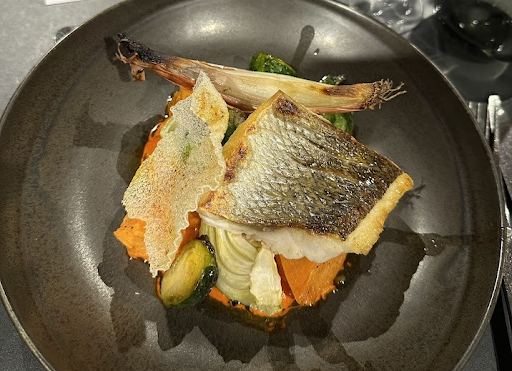 Read moreAccueil agréable Une entrée avec un poulpe grillé très ferme, un coulis de pequillo et red meat sans beaucoup de saveur et des grains de riz grillés dur comme des cailloux. Je comprends le désir d'apporter des textures différentes. Il ne faut pas confondre dur et croustillant. Plat cabillaud nacré parfait et asperges croquantes et Mousseline de céleri. Dessert excellent mousse au chocolat avec une gaufrette sans intérêt. Une bonne tuile maison aurait ravi mes papilles, ananas et kiwi. Des gaines de sésame très dur qui n'apportent rien comme les grains de riz grillé. Je reviendrai avec plaisir tout de même essayer un autre menu. Serveuse très...