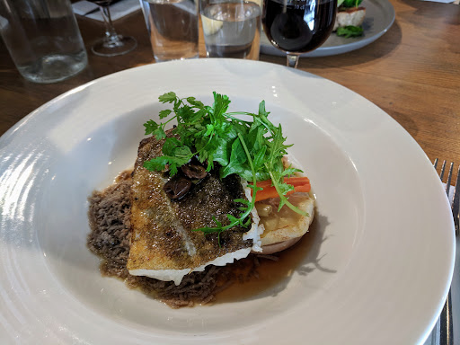 Warm bistro with a rustic vibe, presenting traditional mains & desserts, as well as wines.