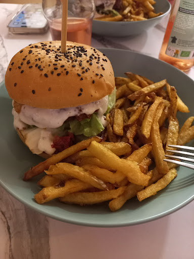 Read moreNous y sommes allĂ© un dimanche midi . GĂ©nial d'avoir un petit resto vĂ©gĂ©talien, avec de bons burgers . Une Ă©quipe jeune et fĂ©minine . L'Ă©quipe est Ă l'Ă©coute et sait vous faire passer un bon moment . En tous cas la serveuse Ă©tait sympathique, et nous a donnĂ© un doggy bag pour que nous puissions terminer nos burger plus tard . Les frites Ă©taient bonnes, bien croustillantes Les burgers Ă©taient trĂšs bons, mention spĂ©ciale pour la petite sauce au yaourt vĂ©gĂ©tal, avec le savoureux falafel, et ... Bref je m'arrĂȘte lĂ car je n'habite pas Ă Rennes et lĂ je pense aux autres recettes de burgers que j'ai trop envie de tester .............