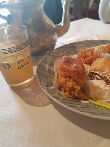 Read moreCouscous très bon. En revanche, propreté des lieux plus que moyenne. Accueil plus que spécial lorsque nous (nous étions 2) avons répondu que nous n'avions pas réservé. Refus catégorique du patron de servir un tajine, car nous n'avions pas réservé. A peine installés, ce dernier, sans prévenir, tire brutalement sur notre table, pour faciliter le passage de clients qui, eux, ont réservé. Ensuite, il vient regarder dans la soupière le niveau des légumes, afin de s'assurer que nous disions la vérité lorsque nous annoncions que le repas était bon. Puis vient la théière, ou plutôt les théières, car il rapporte les théières de deux tables ensemble, l'une contenant du thé non sucré pour la table voisine. Ayant oublié laquelle était non sucrée, le voilà qui prend une cuiller et goûte directement dans le récipient... Puis au moment de partir, et donc de passer à la caisse, c'est comme si nous avions été les meilleurs amis du monde, et que nous avions gardé les cochons ensemble; nous serions toujours les bienvenus dans son établissement (il peut toujours courir) ... L'histoire ne dit pas si la condition de réservation était là aussi nécessaire .... Bref, entre obséquiosité dégoulinante et insupportable, simagrées et hypocrisie galopantes et insultantes, vous êtes servis comme des rois! Aussi, vous conseillerais-je vivement d'éviter à tout prix ce...