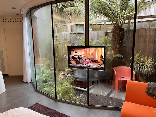 Read moreVery belated review of our five-day stop at Les Patios in July. I suspect most people only stop a night or two, but it ticked all the boxes we wanted for a relaxing break and so easy to get into the centre of Rennes on the bus. David and Christine are marvellous (and very down-to-earth) hosts and this bijou hotel in the fringes of suburbia is a dream. ||||We had the pool pretty much to ourselves for most of our stay (the few other guests tended to arrive late in the afternoon and leave soon after breakfast), though it was sufficiently hot that we frequently retired to our cleverly designed air-conditioned room (right next to the pool area) to read and laze. Christine made sure there was always a wonderful spread for breakfast, even if we seemed to be the only ones there, and even gave us a bag of pastries for the trip home on our last morning.||||Wouldn't hesitate to come here again if in the area, especially as the lunches and dinners (reviewed separately)...