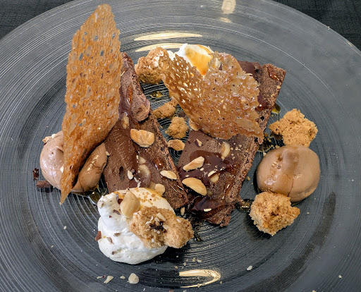 On oublie souvent qu'il n'y a pas que le centre de Rennes, pour découvrir des pépites niveau restaurants. Étant de passage autour de La Chapelle-des-Fougeretz, il se faisait grand temps de manger quelque chose. Je tombe sur ce restaurant Ty Marie, déjà très bien noté. De l'extérieur le restaurant ne paye pas de mine, il est localisé derrière la place principale. Par contre en rentrant on trouve un cadre sympathique, assez épuré, plutôt séduisant avec une terrasse ombragée. Le patron très amène vous installe tranquillement. L'ambiance est calme avec un fond jazzy, parfait pour apprécier un repas a discuter. Il vous présente ensuite le menu du jour, en prenant le temps de vous expliquer la confection des différents plats. Le conseil sur le vin est également très éclairé. L'entrée est simple mais délicieuse, très fraîche avec de la mâche, un bon équilibre et de belles saveurs, Céleri rémoulade, saumon fumé, pommes granny et pickles d'oignons. Le plat principal, un pavé d'aiglefin, est divin, le poisson est cuit a la perfection, nacré a souhait, le risotto de chorizo avec du goût, mais pas overpowering pour ne pas dénaturer ce superbe poisson. Un petit condiments avec des herbes fraîches lie le tout merveilleusement bien. Et le dessert royal chocolat avec une ganache a la fève de tonka, tuiles délicieuses, crumble impeccable et le gâteau au chocolat incrusté de cacahuètes. Riche, mais quel délice ! Le patron est d'une gentillesse, sans prise de tête, juste un amoureux de la cuisine. Au final un sans faute pour se menu entrée, plat et dessert a 23eur au moment de l'écriture de cet avis. A...