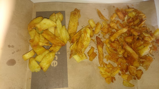Read moreLa qualité va en se dégradant, c'était la dernière fois pour moi. Le steak est systématiquement à point, quelle que soit la cuisson demandée, et est le seul élément chaud des burgers, par ailleurs peu fournis. Les frites ne sont pas mieux (cf photos). Vous avez un tas de petite frites grillées pour remplir le bac, et quelques frites correctes sur le dessus. Cette fois j'ai eu droit à une dizaine de frites mangeable. Enfin, l'accueil est atroce. Entièrement "robotisé", tourné uniquement vers l'efficacité. Vous devez dire les choses dans l'ordre ou on vous remet immédiatement dans les clous. Dans ces conditions, ils pourraient aussi bien mettre une borne de commande, ce serait limite plus agréable. Mais probablement que les clients seraient trop lents à commander à leur goût... Maintenant ils commencent même à prendre la commande suivante pendant que vous payez. Le sourire est en option. On pourrait croire que pour un service aussi raté, les prix seraient intéressants,...