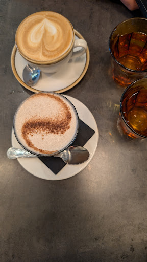 Exellent workers and nice atmosphère in here, with a classic 40's music that was not too loud. We came for the breakfast and was everything is extremly delicious. My Chai latte with vegetal latte was creamy and so also the the cappuccino of my bf, I categorize good cafè shop from that because I'm a cappuccino lover. We order the eggs with mushroom and bacon, served with toasted bread and some butter and as sweet the pancake with fruits, and both was so great. I loved the pancake the syrup and cream on the top...