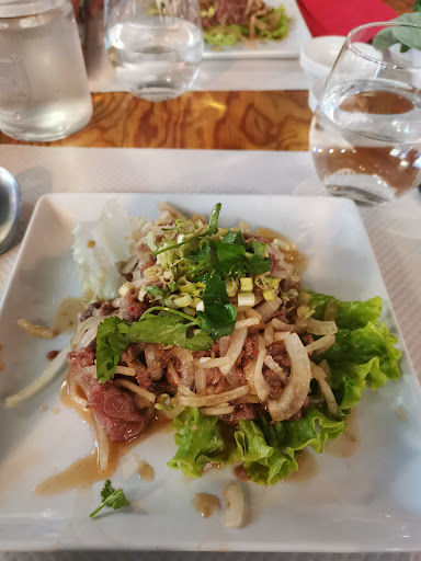 The beef broth in the pho was truly delicious. Fresh cut chillis add an extra "oomph" to the dish. The vermicelli lemon grass beef salad with pork balls was also quite tasty. For dessert I had the red beans with chendol in coconut milk. There are quite a number of main dishes to choose from and at prices that don't break the bank this little nondescript restaurant off the main street could easily become ones regular dining place especially when dining out alone or with a friend or as a family. This is an ultra relaxed low key restaurant with very simple decor with seating for twos and singles and tables that can be pushed together for groups. This Monday evening saw a number of people dining on their own and couples out for a late meal. The staff were friendly. I don't speak any French but the menu has pictures and English descriptions...