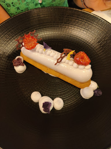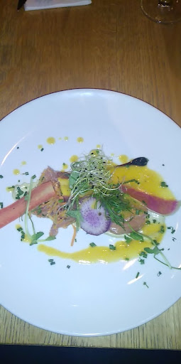 Certes l'entrée chaude était plutôt tiède et servie dans une assiette qui m'est arrivé quasi froide ce qui a tiédie l'entrée, et il manquait une cuillère pour manger l'oeuf poché et sa purée très fine de légume qui l'accompagnait, mais dans l'ensemble le repas c'est très bien passé et les garnitures ainsi que les produits étaient vraiment délicieux. La cuisson de la volaille manquait un chouilla de cuisson pour ma part mais ça ne m'a pas empêché de finir mon assiette. Les sauces étaient bonnes aussi.