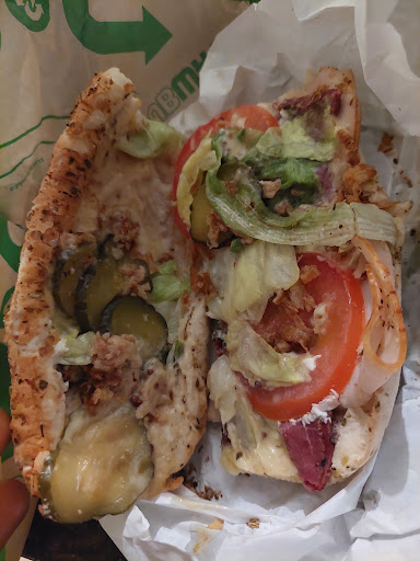 Malheureusement (dans tous les subway de France) il y a des problèmes d’hygiène les employés font des allers retours entre la caisse et les sandwichs avec les mêmes gants en touchant l’écran tactile de la caisse etc.. après ils touchent avec leurs mains les ingrédients qui se mettent mal sur le sandwich..
