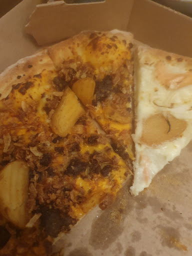 Mars 2024 : nous aimions bien commande là, meme si l'oubli des oignons etait récurrent, mais il y avait un jeune homme très serieux qui vérifiait la bonne qualité, mais j'ai l'impression de ne plus le voir et je ne sais pas ce qui s'est passé mais la qualité s'est dégradée. Pour du rapide nous trouvions que les pizzas étaient tout de même bonnes par rapport à la qualité/prix. Mais hier je pense que cette fois ci c'est notre dernière fois. Pizzas juste mangeable, on cherchait si la sauce tomate et la garniture était là. 2 pizzas identiques ont été commandées mais l'une où j'ai fait ajouter des olives. Elles avaient rien à voir. Nous avons tenté les fries au bœuf, goût de carton, mon fils de 21 ans m'a dit de les jeter. C'était immangeable ! Après 3 essais elles ont fini a la poubelle. Heureusement que nous avions 6 sachets d'huile épicé pour relever la note des pizzas. Cela ne valait pas 50 euros ! C'est très dommage qu'il n'y ait pas plus...