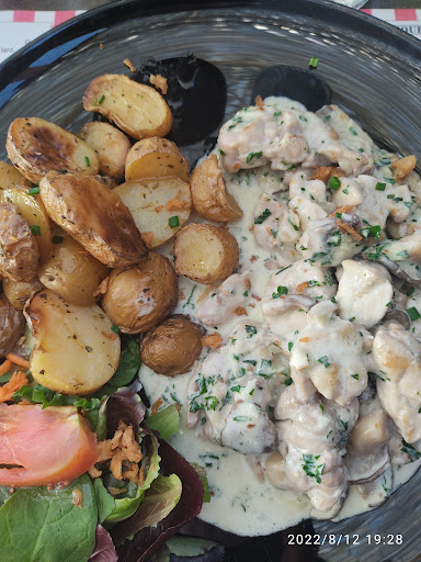 Read more"Venez Ă midi si vous ĂȘtes en groupe, ainsi vous serez servis plus rapidement..." rĂ©sultat ? A 14h toujours pas de dessert du jour en vue... enfin si, les brownies crĂšme anglaise Ă©taient sur notre table - arrosĂ©s de sauce caramel et sans aucune trace de crĂšme (cf photo) - et les babas au limoncelo attendaient sur le comptoir dans une assiette bouillante que la serveuse au combien polie et joviale daigne enfin nous les servir... Et que dire des cacots spĂ©cialitĂ©s de la maison ? Version Monthana : un Ă©crasĂ© de patate farci d'ail avec quelques morceaux de poitrine insipides le tout surmontĂ© de trois oeufs sans poivre ni sel... Les frites du voisin ? Toutes graisseuses et molassonnes... Bref, triste accueil, service interminable et plats du jours et specialites de la maison peu recommandables... passez...
