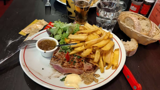 Read moretres bien.... avant j'y allais une fois par mois avec mon junior, 8 ans, un grand garçon..., de 8 ans...rires... il prends son menu, nuggets, pas ceux du mac do, oublions la m...americaine....plus frites.... Papa prend juste un gros morceau de viande...., onglet, bavette....poire ou araignée..... c'est de la bonne viande, je prends UNE biere et UN verre de bon vin rouge.... quand on rentre à la maison, ouvrier que je suis, sur que j'ai plus faim... pas avec 300 g ....de bonne viande.... ou mon record ? 550 g de viande, pas de frites, légumes, du bon, et 2 , 3 patates , vapeurs, sauce qui va bien.... c'est pas un resto ouvrier avec des vrais produits ...bio... mais la qualité est tres bien.....