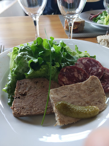 Totalement séduits par le lieu magnifiquement rénové et par la vue sur le village en contre bas. La cuisine est faite de produits issus de l'exploitation ou de producteurs locaux. Les plats sont simples mais très très ien cuisinés (je ne suis pas fan de la viande rouge mais le filet de bœuf en brioche est fondant à souhait). Le service est discret et très souriant, la salle est vaste et calme. Le lieu est très propre. Seul petit bémol... la porte de la cuisine grince 😉 cest un...