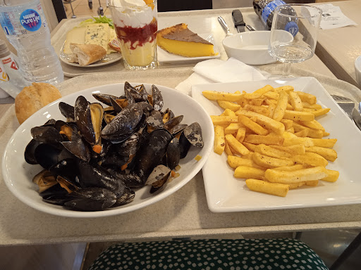 Arrivés à 20h25, seulement 4 morceaux de pain étaient disponibles. Nous passons commande pour nos plats et un dessert (glace). On nous informe alors que l’établissement ferme à 21h, mais que le service des glaces ferme également à cette heure-là, ce qui signifie qu’il faudra venir chercher la glace avant. Monsieur ayant choisi les moules à volonté (ce qui implique naturellement plusieurs passages), il est contraint de manger rapidement.