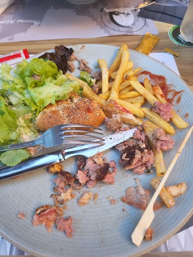 Read moreDéception de ce jour. Nous avons commencé par prendre un verre en terrasse après de très longues minutes d’attente, il a fallu rentrer pour commander la première tournée. Nous avons réservé une table pour 10 personnes, on passe commande et là s’enchaîne les aléas. Premier plat qui arrive , un menu enfant , Dans l’assiette, une Knacki Une salade verte des frites maison, accompagnées aussi d’une pomme de terre à l’eau coupé en deux ça fait un peu beaucoup de pomme de terre pour un seul plat et en prime sur la pomme de terre une belle petite araignée!!!! Nous avons donc renvoyé ce premier plat( menu enfant pour la modique somme de 12.50€) beaucoup trop cher pour cette assiette. Ensuite Dans la commande, il y avait un burger sans tomate qui arrive, on nous dit qui a pris le burgers sans tomate, donc le serveur avait bien pris notre recommandation mon fils commence à manger et là que voit-on de la tomate, heureusement qu’il n’y avait pas d’allergie! Le deuxième burger le serveur. Nous demande donc la cuisson du steak. Il lui a été demandé bien cuit. Le burger est arrivé avec une viande saignante. Le prix des plats est excessif et l’organisation en cuisine est à revoir. Aucun geste commercial n’a été fait pour cela qui aurait été la moindre des choses …. Le serveur était désolé mais quand on lui a fait remarquer que ça commençait à faire beaucoup il nous a répondu « qu en cuisine il avait eu 80 repas d’un coup « désolé mais ce n’est pas notre problème ! Dans ce cas prenez moins de réservation et...