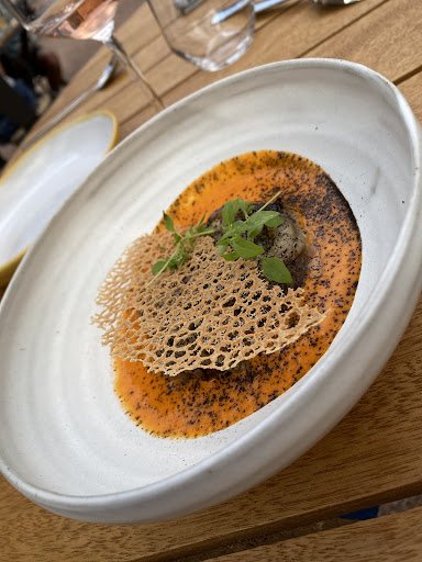 Read moreUn endroit unique dans la région ! Dans un cadre somptueux, on arrive sur un parc très arborés où l’on peut manger lorsque le temps s’y prête. L’intérieur n’est pas en reste, contemporain et très élégant, cuisine ouverte, on prend place au comptoir, sur une grande table à partager ou à l’écart pour être plus intime. Les chefs et cheffes sont en résidence temporaire, ce qui permet une expérience culinaire toujours différente et pleine de saveurs ! La carte des boissons et vins est superbe, toujours dans une recherche de qualité et de produits naturels et locaux. Merci à Maxime pour son accueil chaleureux et ses conseils précieux pour le...