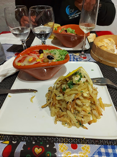 Read moreBar- restauration décor et ambiance "kitch" avec musique idem mais accueil sympathique, Rose la patronne très gentille. Dommage car le prix, 48€ un peu élevée pour un pavé de morue de 300gr (principalement arrête dorsale) et un effiloché de morue au bon goût mais baignant dans l'huile avec les frites. Une petite bouteille d'eau gazeuse portugaise de 25cl (très bonne) et un "super bock" blonde (avec plein de dépôt dans le verre, nous l'avons signalés et même changé il y en avait encore mais bon ...). Du pain qui à priori sortait du congel puisque la serveuse nous a dit qu'il fallait qu'ils le sortent pour le faire cuire, des assiettes ébréchées... Il me semblait...
