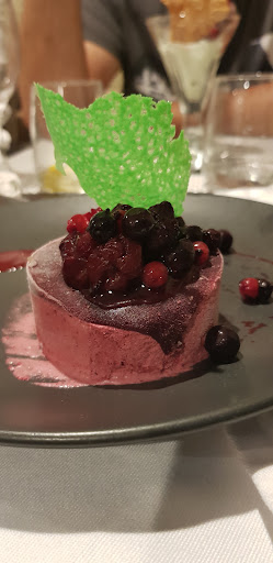 Great steak with herby butter. My wife enjoyed her fish. Potatoes: garlicky and moreish. The giant profiterole with ice cream inside and hot chocolate poured over, was so good. A very filling and tasty meal. Attentive, friendly staff....