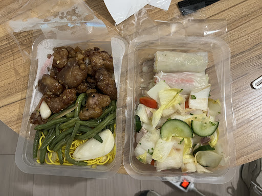 De plus elle est allé au wok. Elle n'a même pas eu le choix de sa sauce qui lui a été mise par défaut. Moi pareil, je demande thaïlandaise. Je me retrouve avec curry (BRAVO POUR LES ALLERGÈNES EN PASSANT !!)