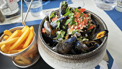 Read moreLes avis étant dithyrambiques, nous avons donc réservé sans hésitation pour manger des moules suivies d'un dessert. Étant archi-complet, on n'a pas pu nous prendre avant 21h (soir de semaine fin juin) donc j'ai dit ok, le serveur me disant qu'il m'appellerait si une table se libérait avant. Pas eu d'appel donc 20h58, nous nous présentons et il y avait plusieurs tables libres ! Bref, passons, en vacances on a le temps. Cadre idyllique, terrasse atypique sur la mer, accueil sympathique et souriant, service parfait. Par contre les moules, bof bof....beaucoup (au moins 30%) de petites toutes ratatinées au fond de leur grosse coquille, sauce provençale aux tomates fraîches en cubes crues, bref, grosse déception, énormément de bouillon gras, une soupe quoi ! Frites correctes. Crêpes en dessert : très épaisses et du vrai caoutchouc. On ne nous a pas gratifiés d'un "ça a été Messieurs Dames ?", donc, je n'ai rien dit. Par contre, tarif très correct vu l'emplacement et le cadre. Donc, globalement déçus pour la cuisine mais nous avons tout de même passé...