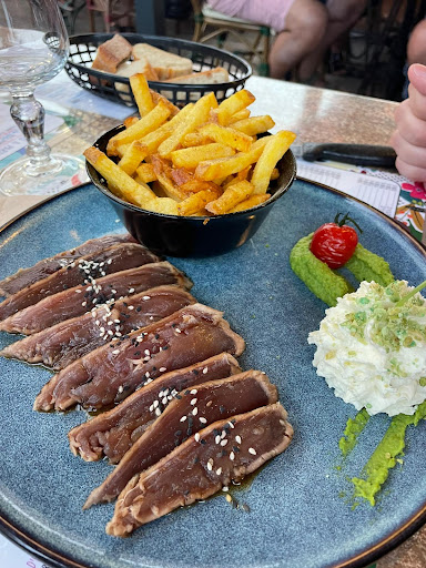 Read more5 étoiles pour l'accueil et l'attention particulière qui nous a été apporté ! En effet, nous avions réservé pour le soir, malheureusement un peu pluvieux avec qqs averses avant et pendant le repas, le personnel est venu à de multiples reprises nous demander si tout allait bien et si nous n'etions pas trop mouillés et quil était possible de nous déplacer au besoin (on était seul sur la terrasse non abritée, enfin si, avec une toile tirée nous protegeant tout juste au dessus de nous )! De plus, étant venu pour l'anniversaire de ma copine, une petite bougie et un bon anniversaire à été vigoureusement entrepris au dessert et la patronne est venu encore s'excuser pour la pluie en apportant deux flûtes de Champagne, belle attention quon a particulièrement appréciée, toujours appréciable de voir encore des gens qui ont un sens d'accueil et commercial !! Quant à la cuisine je mettrais 4/5, cest frais et tout à fait correct avec des plats simples (voir la carte en image sur dautres commentaires) . Dommage pour le coulis chocolat industriel certainement sur les...