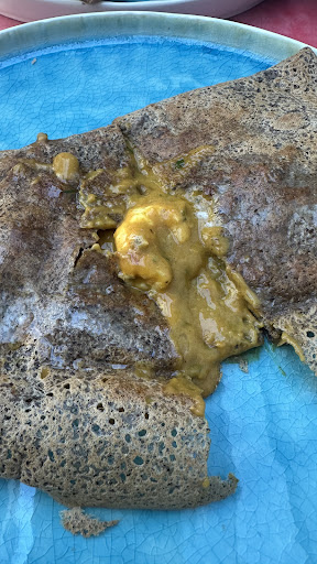Read moreTrès mauvaise expérience ce soir. Pourtant déjà venue il y a quelques années, la déception est grande. J’ai commandée la crêpe aux langoustines à l’américaine. La sauce était tout simplement immangeable, immonde. Beaucoup trop relevée et je suis habituée aux épices… Nous nous sommes plaintes dès la première bouchée et rien ne m’a été proposé à part du pain, alors que la serveuse a admit que la sauce était différente de d’habitude. D’ailleurs, rien n’est écrit sur la carte pour prévenir que c’est aussi relevé (même si ici, je pense que la sauce était ratée). Le piment de Cayenne ne se sent pas autant normalement. Aussi, la serveuse ne nous a pas prévenu non plus, hors sa collègue nous a bien dit qu’elle aurait dû. Pour finir, en ouvrant ma crêpe pour sortir un maximum de sauce, j’ai pu compter 5 petites langoustines qui se battaient en duel dans un demi-litre de sauce sortie des enfers (un record pour 16 euros), et dans la sauce, c’est avec bonheur que j’ai trouvé un cadeau du cuisinier : un cheveux! Non, c’est même pas une blague. Et je l’ai montré à la serveuse. Donc, quand on nous a demandé ironiquement si tout s’était bien passé et qu’on a dit non, la serveuse, qui n’a sans doute pas assumé de ne pas avoir prévenu ni trouvé de solution de remplacement (par exemple), n’a rien dit au patron et donc aucun geste n’a été fait. Gentilles comme nous sommes, nous n’avons pas voulu faire de scène… On aurai dû. Je repars le ventre à moitié vide, un autre cheveu entre les dents (pas une blague non plus), 16 euros par la fenêtre, en espérant ne pas être malade cette nuit. Bref, un sens du commerce déplorable, un cuistot vraiment trop (trop) fan de piment de Cayenne et qui a oublié d’enfiler une charlotte. A...
