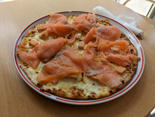Commande d'une pizza géante et de grignottes de poulet. Très bonne pizza, une géante pas ronde et un peu petit, relativement loin des bords de la boites pour une pizza à 16,95 € mais plus correct à 13.95 € malheureusement couvre-feu donc prix avec livraison inclus. Jusque la absolument normale et correcte. Le soucis c'est que ne je suis pas passé pour une plateforme de livraison tiers pour me dire qu'il n’auront pas de 15% par la plateforme tiers et que une livreur ne sois pas obliger de faire l'immense trajet qui séparer la Fabulo Pizza de l’hôtel Caravelle qui sont face à face. De plus la description des grignottes de poulet possiblement à revoir car litigieux: "5,95 € : 6 pilons de poulet marinés et rôtis avec une délicieuse sauce BBQ." Imaginé du poulet marinés et rôtis ... Maintenant retour a la réalité. Il n'y aucune certitude mais il est bien probable que le poulet n'es pas vu l'ombre d'un marinade dans leurs cuisine. Et viens d'un sachet industrielle tout comme la délicieuse sauce BBQ qui deviens un sachets de sauces Colona de 10g Barbecue et un Ketchup.