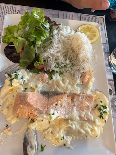 Le dîner était correct. Si vous devez dîner ici, allez manger la pizza. NE commandez PAS le saumon à moins que vous n’aimiez que votre poisson soit pâteux et recouvert de sauce.