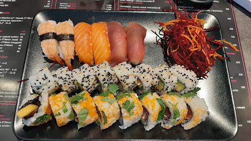 Read moreDélicieux: de ce côté-là, rien à dire. Parfois assez cher, comme les minuscules portions de sashimi, à 4 ou 5€ les 2 pièces. Jamais rien vu de tel, nulle part. Le reste est à un prix convenable. Pour le reste, le patron est assez typique du commerçant arrogant et hermétique à la critique. Nous sommes venus pour une commande à emporter avec ma collaboratrice et sa fille ce midi. Au moment de payer une partie de la commande (pour trois personnes , donc) en titres restaurant, il refuse: "Je ne prends pas plusieurs titres restaurant par commande. En plus c'est pour les gens qui travaillent, pas les vacances". Euh... D'après vous, que faisions-nous en semaine, chez vous, à 13h30?? Bref, ma collègue a donc pu utiliser ses titres restaurant, pour ma part j'ai renoncé face à sa mauvaise humeur. "J'ai des frais", qu'il disait. Et? Si les titres restaurant lui coûtent plus qu'ils ne lui rapportent, qu'il les refuse. Bizarrement, il les accepte... Déduisez-en ce que vous voulez! Pour ma part, j'en ai été pour 50 euros de ma poche, du coup. Bref si vous commandez entre collègues, passez plusieurs commandes. Le monsieur semble oublier qui le fait vivre! Assez peu de chances que nous revenions, pour la seule raison de cet accueil tout sauf serviable et...