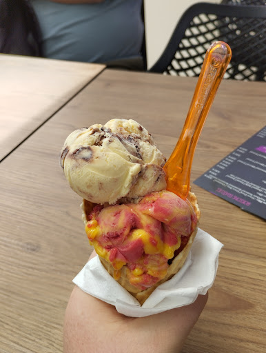 Assis à la table nous nous déplaçons au comptoir pour voir les parfums de glace. La serveuse arrive nous lui demandons deux coupes de glace et une crêpe. Elle nous répond qu'elle peut prendre la commande pour la crêpe mais pas pour les glaces. Je vous avoue que ça ne me dérange pas de faire trois pas mais je trouve cela illogique. Bref pas de bon appétit quand on sert le client, pas de goût particulier au niveau des glaces dites artisanales et prix pas donné sauf si vous aimez être un pigeon de l'île d'Oléron. Bref en tant que baignassou comme ils aiment les touristes je ne remettrai pas les pieds dans cet établissement. La prochaine fois revoyez votre organisation et...