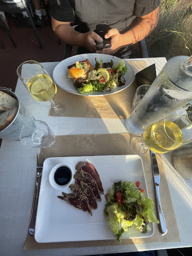 Restaurant très à la hauteur ! Dans un cadre chaleureux, lieu de détente et pour tous, petits et grands ! Personnel très sympathique,, souriant, et très à l'écoute des clients ! Venez nombreux le découvrir et vous jugerez par vous-même !nous avons été servi par un gentil Monsieur, prénommé Omar, très serviable, très sympathique, très professionnel, naturel, rapide, efficace.. Tout comme sa collègue de salle Maud, aussi qualifiée que lui, et tout le personnel de ce super restaurant au Port à la Palmyre.. Cadre chaleureux, de couleurs attrayantes, au centre un fourneau super moderne pour réchauffer nos cœurs ! C'était délicieux, ce sont nos papilles qui ont été ravies tout autant que nous ! Un grand merci par la gentillesse de Monsieur le Directeur de ce restaurant qui nous a offert une flûte de champagne pour mon mari et moi pour notre anniversaire de mariage 💒, 37 ans ! Vous êtes très gentil pour cette gentille intention ! Nous avons été très agréablement surpris 😮 et très touché par votre geste, nous en remercions très sincèrement ! Nous levons notre coupe à votre intention, chapeau bas à vous tous ! Je vous le conseille vivement et vous pourrez juger par vous même, vous ne pouvez pas être déçu ! Pour moi "C'est du haut de gamme"! Vous êtes tous à la hauteur de vos compétences, bonne continuation à tous, bravo 👏 !...