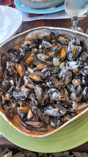 Read moreUn grand merci au patron de La Palmeraie car venant depuis des années je n avais jamais été déçu mais là hier soir je n ai pas été très satisfaite du personnel j avais réservé pour 3 et sans le savoir ma sœur arrive avec son mari je demande donc à la jeune fille qui accueille si on peut avoir d une table pour 5 " ha mais non pas possible" se joint à elle un grand jeune garçon blond qui dit la même chose donc nous voilà séparé , arrive le patron je l en informe et bingo il nous déplace à une table de 5 qui n était pas réservée, il me dit c est très bien ça me libère 2 tables et un moment après 3 et 2 personnes arrivent séparément la jeune fille les place en me regardant avec des yeux d amour donc c était possible cette année le personnel n est vraiment pas agréable à l exception du jeune garçon très brun qui nous apportait les plats ha par contre je demande des frites en portion individuelle et non on nous apporte une assiette pour 2 ce n est vraiment pas hygiénique c est le côté à revoir sinon les moules à la bordelaise un délice peut être à l année prochaine et fidèle depuis des années nous nous n avons pas eu droit à un...